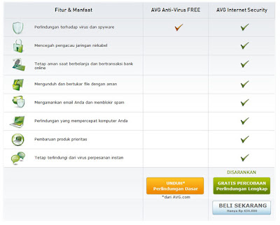 Saat ini AVG Antivirus yang tersedia adalah versi AVG Anti-Virus Free 2012. Untuk mendapatkannya silahkan download dari situs AVG yaitu http://free.avg.com. Pada tampilan situs AVG tersebut akan terdapat 2 produk AVG, yaitu AVG Anti-Virus 2012 dan AVG Internet Security 2012. Silahkan click tombol "Unduh" atau "Download" pada pilihan AVG Anti-Virus Free 2012. Pada tampilan selanjutnya silahkan click tombol warna orange yang ada tulisan "Unduh* Perlindugan Dasar" maka proses download akan otomati berjalan. Apa yang membedakan AVG Anti-Virus Free 2012 dengan AVG Internet Security? Yang pertama adalah masalah lisensi, AVG Internet Security 2012 adalah berbayar. Disamping itu AVG Internet Security 2012 memberikan perlindungan yang lebih lengkap.